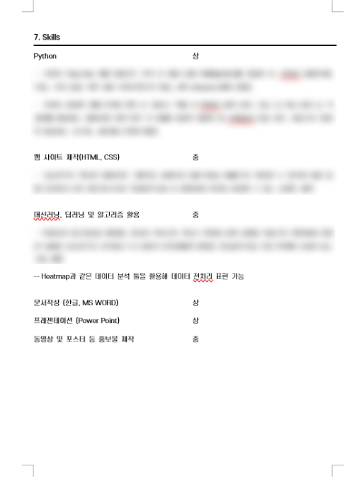 그래도 (양심 상) 제 나름대로 skill이라고 적은 것에 대해